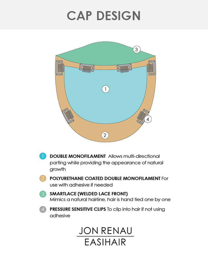 Crafted with 100% Remy human hair, the Top Form Lace 14" offers luxurious texture and styling versatility in a discreet, lightweight topper. Designed for seamless integration, it features a temple-to-temple SmartLace lace front that mimics a natural hairline, eliminating the need to blend your natural front hairline. Graduating density transitions from a light front to medium coverage at the crown and back, providing a flawless, natural look. Perfect for mid-progressive hair loss, the 14" length is ideal for achieving subtle volume and movement.